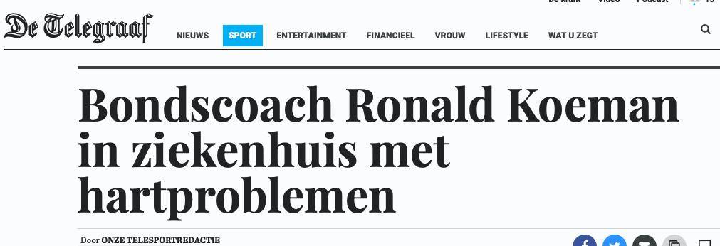 北京工夫昔日清晨,《荷兰电讯报》传来一则让球迷们担忧没有已的音讯。往年53岁的荷兰国度队主锻练罗纳德·科曼被送入病院,在急救中。